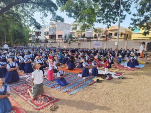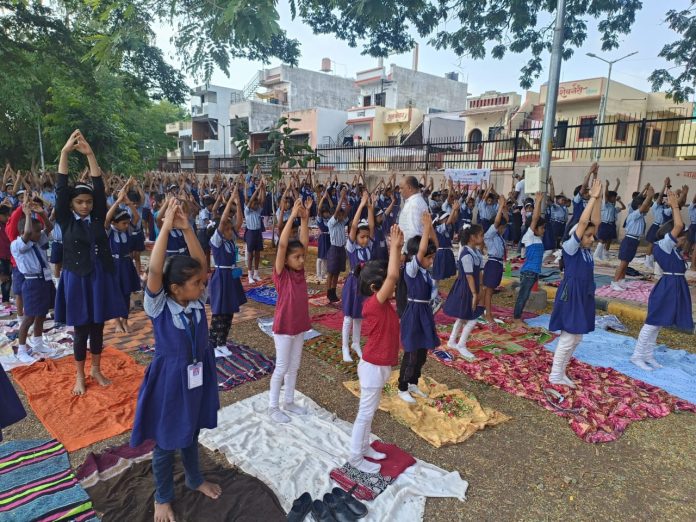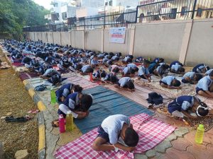 सिडकोच्या हिंदूहृदयसम्राट मा. बाळासाहेब ठाकरे विद्याप्रबोधिनी मनपा शाळा क्र. ७१ मध्ये जागतिक योगदिन मोठ्या उत्साहात साजरा करण्यात आला. जागतिक योगदिनाचे औचित्य साधून गेल्या चार दिवसांपासून शाळेत योगदिनाची पूर्वतयारी चालू होती. महाराष्ट्र योगशिक्षक संघाच्या योगशिक्षिका जयश्री भामरे, योग विद्याधाम नाशिकच्या सुनंदा सखदेव व त्यांचे सहकारी योगशिक्षक यांनी शाळेत येऊन सर्व विद्यार्थ्यांकडून योगासनांचा दररोज सराव करुन घेतला. आज जागतिक योगदिनी प्रार्थना, दंडस्थिती, बैठक स्थिती, शयनस्थिती, विपरीत शयनस्थिती, कपालभाती, प्राणायाम, ध्यानधारणा व प्रार्थना अशाप्रकारे विद्यार्थ्यांकडून योगासनांचा अभ्यास करुन घेण्यात आला. इ. १ ली ते १० वी च्या विद्यार्थ्यांनी उत्स्फूर्तपणे सहभाग घेतला. कार्यक्रमाचे नियोजन मुख्याध्यापक बाळासाहेब सातपुते यांच्या मार्गदर्शनाखाली किसन काळे, विनोद मेणे, प्रमिला देवरे, शोभा मगर, कविता वडघुले, रुपाली ठोक, योगिता खैरे, वर्षा सुंठवाल, किर्तीमाला भोळे, सुवर्णा थोरात, शैलजा भागवत, प्रविण गायकवाड यांनी केले.