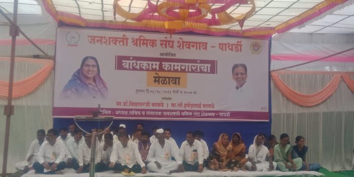 अहमदनगर : (सुनिल नजन/अहमदनगर जिल्हा) नोंदणीक्रुत बांधकाम कामगारांच्या प्रलंबीत मागण्या साठी जनशक्ती श्रमिक संघाच्या वतीने शेवगाव येथील आबासाहेब काकडे महाविद्यालयाच्या प्रांगणात बांधकाम कामगारांचा मेळावा संपन्न झाला. या मेळाव्याच्या अध्यक्ष स्थानी अँडहोकेट शिवाजीराव काकडे तर प्रमुख पाहुणे म्हणून युवकांचे नेते जगन्नाथ गावडे हे होते. यावेळी शेवगावचे निवासी नायब तहसीलदार रवींद्र सानप यांना बांधकाम कामगारांच्या विविध मागण्यांसाठी निवेदन देण्यात आले. तत्पूर्वी मेळाव्यात अनेक बांधकाम कामगारांना सन्मानित करण्यात आले.तसेच आंबेडकर चौकात जनशक्ती श्रमिक संघाच्या नवीन कार्यालयाचे उद्घाटनही महिला कार्यकर्त्यांच्या हस्ते करण्यात आले.शासनाच्या बांधकाम कामगारांच्या कुटुंबासाठी असणाऱ्या योजनांची माहिती अँड. शिवाजीराव काकडे यांनी या मेळाव्यात दिली. तर जेष्ठ नेते जगन्नाथराव गावडे यांनी अनेक प्रलंबित प्रकरणात लक्ष घालून अनेक लाभार्थ्यांना योग्य प्रकारे मार्गदर्शन केले. या प्रसंगी जनशक्ती श्रमिक संघाचे अध्यक्ष संजय दुधाडे,सचिव अकबर शेख, अशोक बर्डे,वसंत वाघ,विष्णू दिवटे, शिवाणी लांडे, भाउसाहेब राजळे, माणिक गर्जे, माउली धनवडे,सुखदेव जाधव,आबासाहेब काकडे, सुनिल दारकुंडे यांच्यासह शेवगाव पाथर्डी विधानसभा मतदार संघातील अनेक प्रमुख गावातील कार्यकर्ते मोठ्या संख्येने उपस्थित होते. महिलांची उपस्थिती लक्षणीय होती. यावेळी अनेक नवीन पदाधिकाऱ्यांची निवड करण्यात आली. राजूमामा फलके यांनी सुत्रसंचालन केले. तर आभार निकम सर यांनी मानले.