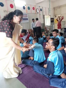 नाशिक : दिनांक 31 ऑगस्ट रोजी मनोधार सामाजिक संस्थेच्या वतीने अंबड लिंक रोड वरील सिद्धिविनायक अपंग पुनर्वसन संस्था नाशिक संचालित बौद्धिक अक्षम बहू विकलांग मुला मुलींच्या शाळेत रक्षाबंधनाचा कार्यक्रम पार पडला. संस्थेचे उपाध्यक्ष प्रो राजेश गोसावी यांनी कार्यक्रमाचे नियोजन केले होते. संस्थेच्या सचिव एडवोकेट पुनम तांबट, क्रिएटिव्ह माईंड स्कूलच्या प्रिन्सिपल मनोधारच्या सदस्य श्रीमती मनीषा जोंधळे यांनी मुलांना औक्षण करून राख्या बांधल्या. तसेच खावू वाटप केले. या प्रसंगी आपले मनोगत व्यक्त करताना एडवोकेट पुनम तांबट यांनी अशा मुलांचे पुनर्वसन होण्याकरिता कुटुंब आणि समाजाची महत्त्वाची भूमिका असल्याचे सांगितले. अशा मुलांना छोटे-मोठे व्यवसायिक अभ्यासक्रम देऊन स्वावलंबी बनविले पाहिजे. उपजीविकेच्या संधी निर्माण करून दिल्या पाहिजे असे आवाहन त्यांनी केले. मनोधार सामाजिक संस्थेच्या अध्यक्ष नाशिकच्या जेष्ठ सामाजिक कार्यकर्त्या गीताताई गायकवाड यांनी या उपक्रमाचे स्वागत केले. अत्यंत भावनिक आणि उत्साही वातावरनात झालेल्या या कार्यक्रमाने गतिमंद मुलांच्या चेहऱ्यावर समाधानाचे, आनंदाचे भाव दिसुन आले.