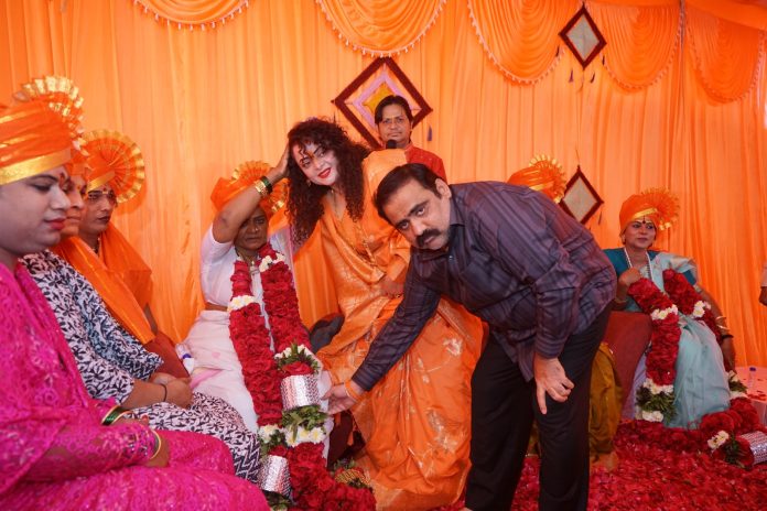 नांदगांव : नांदगाव येथील आमदार निवासस्थानी नांदगाव मनमाड शहरातील तृतीयपंथीयांचा सन्मान सोहळा आयोजित करण्यात आला .दीपावली निमित्त सर्व तृतीयपंथीयांना आमंत्रित केले होते. या वेळी किन्नर आखाड्याच्या महामंडलेश्वर श्री श्री पायलगिरी गुरू, महामंडलेश्वर नंदगिरी, मुस्कान गुरू, नीतू हाजी गुरू, अग्णेश गुरू, श्रावणी पायल नंदगिरी या मंचावर उपस्थित होत्या.आमदार सुहास आण्णा कांदे व सौ.अंजुम ताई कांदे यांनी महामंडलेश्वर गुरूंचे मंत्रोच्चाराच्या गजरात पाद्य पूजन केले. या वेळी साडी चोळी, गुलाब पुष्प हार घालत सर्व गुरूंचा सन्मान केला .ढोल ताशांच्या गजरात सर्व तृतीयपंथीयांचे स्वागत सौ.अंजुम ताई कांदे व शिवसेना महिला आघाडीने केले. या वेळी गुलाब पुष्पंचा वर्षाव सुरू होता.या ठिकाणी सर्व तृतीयपंथीयांच्या हातावर मेहंदी काढली गेली. सर्वांच्या हातात हिरव्या बांगड्या घातल्या गेल्या. सर्वाँना फेटे बांधले गेले.दीपावली निमित्त सर्वाँना साडी, मिठाई, दीपावली गिफ्ट बॉक्स तसेच ओवाळणी देऊन भेट देण्यात आली.या नंतर सर्वाँना पंच पक्वान्न भोजनाची व्यवस्था करण्यात आली होती.सर्व स्तरातील घटकांसोबत दीपावली साजरी केली जाते पण तृतीय पंथीयांना नेहमीच दुर्लक्षित केले जाते म्हणूनच आपणही समाजाचा एक घटक आहेत या भावनेतून आपल्या सोबत हा क्षण साजरा करावा, आपल्या दीपावलीच्या आनंदात सामील व्हावे या प्रामाणिक भावनेतून हा कार्यक्रम घेत असल्याचे सौ. अंजुम ताई कांदे यांनी सांगितले.महामंडलेश्वर श्री पायलगुरु यांनी यावेळी मनोगत व्यक्त करताना अण्णा व ताई यांनी आजचा कार्यक्रम अतिशय सुंदर असा राबवला आम्हाला मानपान दिले आमचे पूजन केले, आमच्यावर फुलांचा वर्षाव करून आम्हाला दीपावलीची भेट दिली या सर्व पाहून आम्हा सर्व किन्नरांना खूप- खूप आनंद होत आहे ,आणि हा मानपान दिल्याबद्दल आभार मानले तसेच अण्णा व ताई यांना उदंड आयुष्य व भरभराटी व त्यांच्या सर्व इच्छा पूर्ण होवो ,असे भगवती चरणी प्रार्थना करत आशीर्वाद दिला.या प्रसंगी महाराष्ट्राचे किन्नर आखाड्याचे महामंडलेश्वर श्री पायल गुरू, मुस्कान गुरू, महामंडलेश्वर नंदगिरी, नीतू हाजी गुरू, अग्नेश गुरू, श्रावणी पायल नंदगिरी (निक्की) सलमा मुस्कान शेख तसेच मोठ्या संख्येने किन्नर उपस्थित होते.