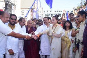 मनमाड :आपल्या सर्वांच्या आशीर्वादामुळेच मी हे सर्व काही करू शकलो असेच आशीर्वाद कायम राहू द्या मी आपणास शब्द देतो की भविष्यात मनमाड शहरात भव्य दिव्य भीमसृष्टी उभारणार : आमदार सुहास आण्णा कांदेचाळीस वर्षानंतर मनमाड करांचे स्वप्न पूर्ण करू शकलो आणि ही जबाबदारी माझ्या नशिबात आली ही सर्व आपल्या आशीर्वादामुळेच शक्य झाले असे मनोगत आज मनमाड येथील लोकार्पण सोहळा प्रसंगी आमदार सुहास अण्णा कांदे यांनी व्यक्त केलेभारतरत्न डॉक्टर बाबासाहेब आंबेडकर स्मारकाचे लोकार्पण आज मोठ्या उत्साहात हजारोंच्या संकेत नागरिकांच्या उपस्थितीत संपन्न झाले.या लोकार्पण सोहळा पूज्य भदंत डॉक्टर राहुल बोधीजी उपस्थित होते व त्यांच्या हस्ते विधिवत पूजन करण्यात आले. यावेळी पूजेस आमदार सुहास अण्णा कांदे व सौ अंजूम ताई कांदे बसल्या होत्या.आज माता रमाई जयंती निमित्त मनमाड शहरातील विविध भागातून मिरवणूक काढून लोकार्पण सोहळा ठिकाणी या मिरवणुकीची समाप्ती झाली. यानंतर सर्वपक्षीय सर्व समाजातील पदाधिकारी व प्रतिष्ठित नागरिक तसेच हजारोंच्या संख्येने उपस्थित असलेले भीम व आंबेडकर अनुयायी यांच्या उपस्थितीत लोकार्पण सोहळा संपन्न झाला.मनमाडकर समाज बांधवांकडून आमदार सुहास अण्णा कांदे यांचा नागरिक सत्कार करून त्यांना सन्मानचिन्ह व सन्मानपत्र देण्यात आले.लोकार्पण सोहळा सुरू असताना आकाशातून नेहेलिकॉप्टर द्वारे पुष्पृष्टी करण्यात आली, दोन हेलिकॉप्टर ने आकाशात सात वेळा घिरट्या मारत स्मारकावर पुष्पवृष्टी केली.लोकार्पण सोहळ्यानिमित्त कमालीचा उत्साह आनंद जल्लोष समाज बांधवांमध्ये पाहण्यास मिळाला.मनमाड शहरातील आंबेडकर पुतळ्यास विशेष महत्त्व आहे बोधिसत्व डॉक्टर बाबासाहेब आंबेडकर यांना दीक्षा देणारे भदंत यांनीच मनमाड शहरातील पुतळ्याचे उद्घाटन केले होते या दृष्टिकोनातून या पुतळ्यास विशेष महत्त्व प्राप्त होते, चाळीस वर्षांपासून मनमाड शहरातील समाज बांधवांची पूर्णाकृती पुतळा असावा अशी मागणी शासनाकडे होती पण ती प्रलंबित होती, आमदार सुहास अण्णा कांदे यांनी मनमाड शहरातील सर्व महापुरुषांची पुतळे व स्मारके नव्याने उभारणार असा शब्द निवडणुकीत दिला होता.चाळीस वर्षांच्या पूर्णाकृती पुतळा ची मागणी आज पूर्ण होत असल्याने समाजबांधवांसाठी हा सुवर्णक्षण आहे आणि म्हणूनच आमदार सुहास अण्णा कांदे यांच्या वतीने लोकार्पण सोहळ्याचे आमंत्रण पत्रिका मिठाई तसेच एका सणाप्रमाणे साजरा करावयास लागणाऱ्या वस्तू एका लोकार्पण सोहळा निमित्त सप्रेम भेट लिहिलेल्या बॅग मधून मतदार संघातील समाज बांधवांच्या घराघरात जाऊन कार्यकर्त्यांच्या माध्यमातून आमंत्रण देण्यात आले होते.मनमाड शहरातील साहित