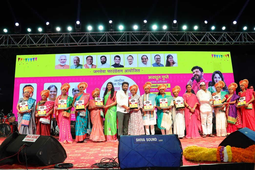 अहमदनगर (सुनिल नजन “चिफ ब्युरो” अहमदनगर जिल्हा) संपूर्ण देशभर जागतिक महिला दिनाच्या निमित्ताने विविध कार्यक्रमाचे आयोजन करण्यात आले होते.त्यामध्ये अहमदनगर जिल्हा आघाडीवर होता. जिल्ह्याचे भाजपाचे खासदार सुजयदादा विखे पाटील यांच्या सुविद्य पत्नी सौ. धनश्रीताई विखे आणि जनसेवा फौंडेशन यांच्या संयुक्त विद्यमाने राहुरी-पाथर्डी तालुक्यातील कर्तृत्ववान महिलांचा सन्मान सोहळा जागतिक महिला दिनाच्या पूर्वसंध्येला आयोजित करण्यात आला होता.महाराष्ट्राचे प्रसिद्ध गायक व संगीतकार अवधूत गुप्ते आणि नटरंग सिनेमा फेम अभिनेत्री सोनाली कुलकर्णी यांच्या बहारदार सांस्कृतिक कार्यक्रमांच्या मेजवानीचे आयोजन करण्यात आले होते. राहुरीत नगर-मनमाड रोडवर चर्च जवळील मैदानात,तर पाथर्डीतील मार्केट कमिटीच्या आवारात आणि शेवगाव येथे खंडोबा माळ मैदानात या खास महीलांसाठीच्या स्पेशल कार्यक्रमाचे आयोजन करण्यात आले होते. पाथर्डी येथील कार्यक्रमात खासदार सुजयदादा विखे पाटील, आमदार मोनिकाताई राजळे, आणि जिल्हा बँकेचे अध्यक्ष शिवाजीराव कर्डिले आणि रणरागिणी फौंडेशनच्या अध्यक्षा सौ.धनश्रीताई विखे यांच्या हस्ते माणपत्र आणि पैठणी शालू देउन बारा कर्तृत्ववान महिलांचा सन्मान करण्यात आला.महीलांच्या झालेल्या गर्दीचा उच्चांक पाहून गायक अवधुत गुप्ते,व अभिनेत्री सोनाली कुलकर्णी यांनी सुजयदादा विखे पाटील यांना आगामी लोकसभेच्या निवडणुकीत पुन्हा खासदार होण्यासाठी सुबेच्छा दिल्या.कर्तुत्ववान महिला पैकी १) अनुराधा फुंदे,२)सुरेखा लोखंडे, ३) वैष्णवी मुखेकर ४)शितल टेके,५)उमामहेश्वरी बजाज,६) सुरेखा गोरे,७) विजया चोरमले,८) मीरा बडे,९)शिंधु आहेर,१०) पार्वती शिंदे,११) डॉ. आयेशा पठाण, १२)शिला जाधव या वेगवेगळ्या क्षेत्रातील नामांकित मान्यवर महिलांना सन्मानित करण्यात आले. सर्वच तालुक्यातील महीलांच्या गर्दीचे उच्चांक पाहून राजकीय निरीक्षकांच्या भुवया उंचावल्या आहेत. सुजयदादा विखे मात्र सर्व सामान्य महीलांच्या समस्या ऐकून गर्दीतच हरवून गेले होते.कलाकार रोहीत माने, आणि शिवाजी परब यांनी मात्र महीलांना आपल्या खुमासदार शैलीत कला सादर करून उपस्थित महिलांना मंत्रमुग्ध केले.प्रेक्षक म्हणून आलेल्या महीलांचे लकी ड्रॉ कुपन जमा करून घेउन लहान मुलांच्या हस्ते कुपन काढून विजेत्या महिलांना संसार उपयोगी साहित्याचे वाटप करण्यात आले. विखे पाटील परिवाराच्या वतीने योग्य नियोजन करण्यात आले होते.जिल्हा पोलिस अधीक्षक राकेश ओला यांच्या आदेशानुसार पाथर्डी पोलिस स्टेशनचे पोलीस निरीक्षक संतोष मुटकुळे यांच्या मार्गदर्शनाखाली चोख बंदोबस्त ठेवण्यात आला होता. सर्व महिलांना सुखरूप घरी पोहचवण्या