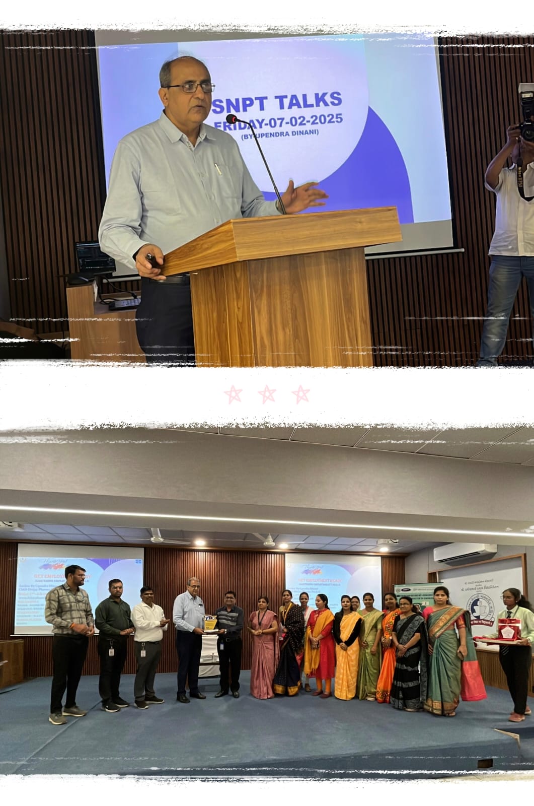 विद्यार्थ्यांना रोजगाराच्या क्षेत्रात सक्षम आणि आत्मनिर्भर बनवण्यासाठी एस. एन. पी. टी. इन्स्टिटय़ूट ऑफ फार्मसीत “एस.एन.पी.टी. टॉक” टीमने एक महत्वाची व्याख्यानमाला आयोजित केली ‘’गेट एम्प्लॉयमेंट रेडी’’ या कार्यशाळेत रोजगारक्षमतेसाठी आवश्यक कौशल्यांचा विकास” या व्याख्यानमालाचे आयोजन ७ फेब्रुवारी २०२५ रोजी झाले असून या व्याख्यानमालाचे प्रमुख मार्गदर्शक मान्यवर डॉ. उपेंद्रभाई दिनानी, अध्यक्ष आणि संचालकऑफ डी विजय फार्मा प्रायव्हेट लिमिटेड कंपनी, यांचे उद्योग क्षेत्रातील अनुभव आणि ज्ञान विद्यार्थ्यांना मार्गदर्शन करण्यासाठी महत्त्वाचे ठरले. या कार्यक्रमात त्यांनी रोजगारक्षमतेसाठी आवश्यक असलेले मुद्दे मांडले. करिअरचे स्पष्ट ध्येय ठरवणे किती महत्त्वाचे आहे, यावर चर्चा करण्यात आली.तसेच भारताने औषध उत्पादन उद्योगामध्ये जगभरात आपले स्थान मजबूत केले आहे. या सत्रात, भारताची फार्मास्युटिकल्स क्षेत्रातील महत्त्वाची भूमिका आणि यामुळे तयार होणाऱ्या जागतिक संधींबद्दल चर्चा करण्यात आली. यामुळे फार्मसी विद्यार्थ्यांना जागतिक औषध उद्योगातील विविध संधींबद्दल साक्षात्कार झाला. संपूर्ण जगात भारतातील ग्लोबल कॅपॅबिलिटी सेंटरस (GCCs) चे महत्त्व वाढत आहे. हे केंद्रे विविध प्रकारचे कामकाज, तंत्रज्ञान आणि संशोधन कार्ये करतात. यामुळे नोकरी संधी आणि उद्योगातील स्पर्धात्मकता वाढते, यावर सखोल चर्चा झाली. ऍडव्हान्स एक्सेलच्या वापराबद्दल महत्त्वपूर्ण माहिती देण्यात आली. एक्सेल जसे टूल्स, फॉर्म्युला, पिवट टेबल्स आणि डेटा अॅनालिसिससाठी आवश्यक असलेल्या कौशल्यांवर चर्चा झाली. हे कौशल्य फार्मास्युटिकल्ससह विविध उद्योगांमध्ये मोठ्या प्रमाणावर वापरले जातात. फार्मसी पदवीधरांसाठी असलेल्या विविध करिअर संधींबद्दल सखोल मार्गदर्शन करण्यात आले. सत्रात, औषध उद्योगातील नोकऱ्या, संशोधन व विकास, फार्मास्युटिकल सेल्स, आणि नियामक कार्यामध्ये कसा करिअर घडवता येईल, यावर चर्चा झाली. जर तुम्ही योग्य कौशल्य आणि क्षमता विकसित केल्या, तर तुमच्या करिअरची सुरुवात चांगली आणि उज्ज्वल होईल. कार्यक्रमाच्या अखेरीस उपस्थित विद्यार्थ्यांनी प्रश्न विचारण्याची संधी घेतली, ज्यात डॉ. दिनानी यांनी सविस्तर उत्तर दिले. विद्यार्थ्यांना त्यांच्या सल्ल्यांचा फार फायदा होईल असा विश्वास त्यांनी व्यक्त केला. यावेळी कार्यक्रमासाठी संस्थेचे अध्यक्ष मा. श्री.नरेंद्रभाई ठक्कर, सचिव मा. श्री. देवेंद्रभाई पटेल, फार्मसी विभागाचे सचिव मा. श्री. उपेंद्रभाई दिनानी, संस्थेचे संयुक्त सचिव मा. श्री. अभयभाई चोक्सी. व प्राचार्य. डॉ. विशाल गुलेचा यांनी शुभेच्छा दिल्या.