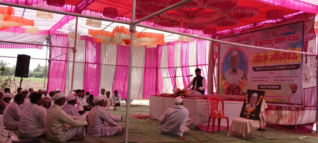 अहमदनगर (सुनिल नजन “चिफब्युरो” स्पेशल क्राईम रिपोर्टर अहिल्यानगर जिल्हा) प्रत्येक दशक्रिया विधीच्या वेळी जर कावळा पुर्व दिशेकडून आला आणि पिंडाला शिवला तर मयत झालेला मनुष्य वैकुंठाला गेला, जर तोच कावळा पश्चिम दिशेकडून आला आणि पिंडाला शिवला तर तो मयत मनुष्य स्वर्गाला गेला,जर तोच कावळा दक्षिण दिशेकडून आला आणि पिंडाला शिवला तर तो मयत मनुष्य नरकाला गेला,आणि तोच कावळा उत्तर दिशेकडून आला आणि पिंडाला शिवला तर मयत मनुष्य हा कैलासाला गेला असे समजावे अशी माहिती नेवासा तालुक्यातील जेऊर हैबतीचे रहीवाशी असलेले आणि पारनेर तालुक्यात निवासी असलेले ह.भ.प. अक्षय महाराज उगले यांनी दिली.ते अहिल्यानगर जिल्ह्यातील पाथर्डी तालुक्यातील कासार पिंपळगाव येथे स्वर्गवासी केरुबापू पाटील शंकरराव राजळे यांच्या पुण्यस्मरण सोहळ्या निमित्त आयोजित केलेल्या प्रवचनात संदेश देताना बोलत होते.केरूबापू पाटील राजळे यांनी वयाच्या ८३ व्या वर्षी आपला देह ठेवला होता.त्यांच्या पुण्यस्मरण सोहळ्याचे आयोजन त्यांचे मंत्रालयात मोठे अधिकारी असलेले आणि गावाचे सुपुत्र डॉक्टर बाबासाहेब राजळे आणि संभाजीनगरचे प्रसिद्ध उद्योजक शामसुंदर राजळे व त्यांच्या सुनबाई सौ. शारदाताई राजळे आणि सौ.शालिनीताई राजळे यांनी केले होते. त्या वेळी ह.भ.प. उगले महाराज यांनी रामायण, महाभारतातील अनेक दाखले देऊन उपस्थित श्रोत्यांना मंत्रमुग्ध आणि भावना विवश केले होते.तसेच मुलगी सासरी जाताना बापाची होणारी अवस्था,भाउ आणि बहिणीत संपत्तीच्या वादातून होणारा कलह,भावा भावात जमिनीच्या तुकड्या वरून होणारी भांडणे या सर्व प्रकारच्या गोष्टींना स्पर्श करीत उपस्थित श्रोत्यांना या वादावर पडदा टाकून एकोपा निर्माण करण्यासाठीचे भावनिक आवाहन त्यांनी केले. माणसाचे जीवन हे क्षणभंगुर आहे.प्रत्येकाने उगाचच कोणाशीही वैरभाव न ठेवता आनंदाने जीवन जगण्यासाठी रोज आपल्या ग्रामदेवता, कुलदेवता,पित्रूदेवता व भगवंताचे स्मरण करून आपले विचार बळकट करण्यासाठी प्रयत्न करणे अत्यंत गरजेचे असल्याचे त्यांनी सांगितले.तसेच प्रत्येकाने आपल्या जिवंत असलेल्या आई बाबांची सेवा तर करावीच पण देशाच्या सिमेवर लढणाऱ्या सैनिकांचा आदर करुन त्यांच्या विषयी क्रुतज्ञता बाळगावी असेही सांगितले.उपस्थितांना भाऊंच्या आठवणी सांगताना अनेकांच्या डोळ्यात अश्रू अनावर झाले होते. स्वर्गवासी केरुबापू पाटील राजळे यांना गावातील सर्व लहान थोर मंडळी “भाउ” या नावाने संबोधत असत. काही वर्षांपूर्वी ते गावातील विविध कार्यकारी सोसायटीचे अध्यक्ष ही होते.त्या काळात ते गावातील अनेक लहान मोठे तंटे सोडवत असत.म्हणून गावाने त्यांना पाटीलकी बहाल केली होती.मग ते “केरु