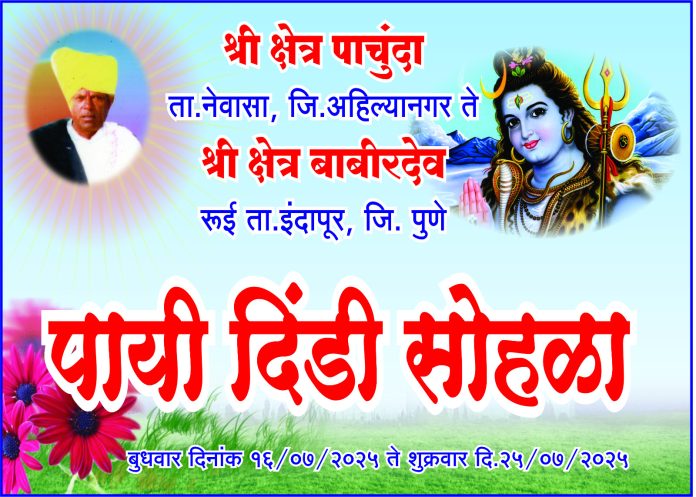 अहमदनगर (सुनिल नजन “चिफब्युरो”स्पेशल क्राईम रिपोर्टर अहिल्यानगर जिल्हा) देवगड संस्थानचे प्रमुख गुरुवर्य ह.भ.प.भास्करगीरी महाराज यांच्या प्रेरणेने आणि ह.भ.प.स्व. काशिनाथ महाराज शिंदे यांच्या आशीर्वादाने व पाचुंदा येथील बाबीरबुवा संस्थानचे प्रमुख मानकरी बाबासाहेब महाराज शिंदे यांच्या मार्गदर्शनाखाली अहिल्यानगर जिल्ह्यातील श्री क्षेत्र नेवासा तालुक्यातील पाचुंदा ते इंदापूर तालुक्यातील रुई येथील क्षेत्र बाबीरदेव येथे रथयात्रेद्वारा 16 ते 25 जुलै 2025 या कालावधीत पायी दिंडी सोहळ्याचे आयोजन करण्यात आले आहे. या दिंडीतील दैनंदिन कार्यक्रम असे आहेत दररोज पहाटे 4 ते 6 काकड आरती,7ते11 वाटचालीचे भजन, दुपारी 11ते2 भोजन व विश्रांती, दुपारी 3ते6 वाटचालीचे भजन, सायंकाळी 6ते7 हरीपाठ, रात्री 7ते8 भोजन व विश्रांती अशी दैनंदिन कार्यक्रमाची रुपरेषा ठरवन्यात आली आहे. बुधवार दिनांक 16जुलै रोजी सकाळी सोन्याबापू शिंदे, लक्ष्मण पांढरे, बाबासाहेब घुले आणि मोरे परीवाराच्या वतीने नाष्टा देउन पाचुंदा येथुन प्रस्थान होणार आहे.दुपारी माका येथील निलेशशेठ महारनोर,ह.भ.प. नारायण महाराज गायके, सोपान भवार,केरू भवार, नारायण भवार,यांच्या वतीने दुपारचे भोजन देण्यात येणार आहे.खोसपुरी येथे सायंकाळी ह.भ.प.आव्हाड महाराज यांच्या वतीने चहापाणी तर बाळूमामा देवकर यांच्या वतीने बाळूमामा मंदिरात मुक्काम होणार आहे. गुरुवार सकाळी जेऊर येथे गणेश दारकुंडे यांच्या वतीने चहापाणी होउन धनगरवाडी येथे बाळासाहेब नजन यांच्या वतीने नाष्टा देण्यात येणार आहे. दुपारी शेंडी येथे आमदार शिवाजीराव कर्डिले साहेब यांच्या वतीने भोजन देण्यात येणार आहे.सायंकाळी सारोळा येथे अंबादास बोरूडे,भगवान बोरुडे ,पांडुरंग बोरुडे परीवाराच्या वतीने रात्रीचे भोजन देऊन शुक्रवारी सकाळी चहा नाष्टा देण्यात येणार आहे.दुपारी वाळुंज येथे गणेश पठारे आणि भाउ आडसुळ यांच्या वतीने भोजन देण्यात येणार आहे.रात्री रूईछत्तिसी येथे मोहनराव जगदाळे साहेब यांच्या वतीने भोजन देण्यात येणार आहे.शनिवारी सकाळी राळेगण फाटा येथे भाऊसाहेब माने, अर्जुन शिंदे, भगवान शेळके यांच्या वतीने नाष्टा होउन दुपारी सांगवी येथे जेउरच्या बाळू बनकर यांच्या वतीने भोजन देण्यात येणार आहे.रात्री मांदळीच्या आत्माराम बाबा मठात मुक्काम होणार आहे.पुढे ही दींडी थेरगाव, शिंदेगाव,कोपर्डी, धालवाडी,राक्षसवाडी, वैसेवाडी खेड,औटेवाडीफाटा, भिगवन,बंडगरवाडी, पिलेवाडी,मोहरी आणि रूई या मार्गाने जाणार आहे.शुक्रवार दिनांक 25 जुलै 2025 रोजी सकाळी ह.भ.प. आदिनाथ महाराज निकम यांचे काल्याचे किर्तन होउन नंतर जालींदर ससे, रामदास गर्जे यांच्या काल्याच्या महाप्रसादाच्या पंगतीचे या सोहळ्याच