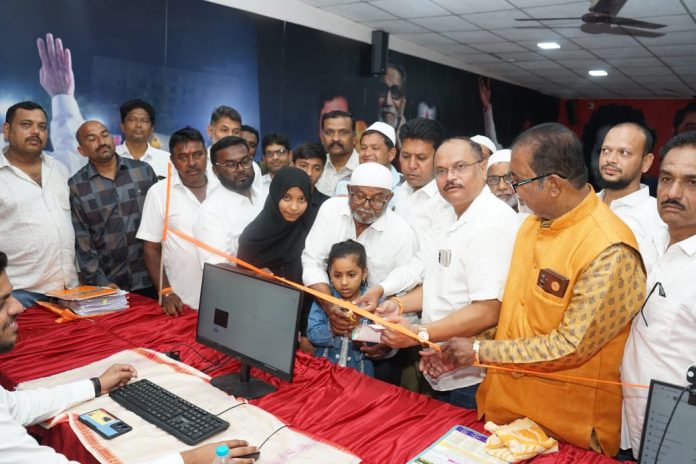 मनमाड : आमदार सुहास (आण्णा) कांदे यांच्या प्रयत्नातून शिवसेना मनमाड शहर व ऑल इंडिया मुस्लिम ओबीसी ऑर्गनायझेशन यांच्या माध्यमातून मुस्लिम समाजासाठी आयोजित करण्यात आलेला OBC प्रवर्गातील जातीचे दाखले तयार करण्यासाठी कागदपत्रांची पूर्तता कार्यक्रम आज, रविवार दि. ५ ऑक्टोबर रोजी सकाळी १०:०० वाजता, आमदार सुहास (आण्णा) कांदे जनसंपर्क कार्यालय, मनमाड येथे यशस्वीरीत्या पार पडला.या कार्यक्रमात मुस्लिम समाजातील पुरुष, महिला व लहान मुले मोठ्या संख्येने सहभागी झाले. दाखले तयार करण्यासाठी आवश्यक असलेले कागदपत्रांची मोठ्या प्रमाणात पूर्तता करून समाजातील अनेकांना शासनाच्या विविध योजनांचा लाभ घेण्याचा मार्ग खुला झाला.हा उपक्रम आमदार सुहास (आण्णा) कांदे यांच्या मार्गदर्शनाखाली शिवसेना मनमाड शहर तसेच ऑल इंडिया मुस्लिम ओबीसी ऑर्गनायझेशनच्या सक्रिय सहभागातून पार पडला. या उपक्रमामुळे मुस्लिम समाजात समाधान व आनंदाचे वातावरण निर्माण झाले असून, उपस्थितांनी आमदार सुहास(आण्णा) कांदे व संस्थेचे आभार मानले.या प्रसंगी शिवसेना शहरप्रमुख मयूर बोरसे, सहसंपर्कप्रमुख अल्ताफ बाबा खान, उपजिल्हाप्रमुख सुनील हांडगे, जिल्हा संघटक नाना शिंदे, मा. नगराध्यक्ष योगेश पाटील, सादिक तांबोळी, नगरसेवक कैलास गवळी, अमजद पठाण, अमीन पटेल, युवासेना शहराधिकारी आसिफ शेख, योगेश इमले, जाफर मिर्झा, राजेंद्र जाधव, संजय नागरे, मुस्लिम ओबीसी ऑर्गनायझेशनचे फिरोज शेख, राहील मनसूरी, इमरान शहा, सद्दाम आतार, अमीन तांबोळी, निसार शेख, रहमान मनसूरी, रशीद तांबोळी, सलीम शहा, अजिज शेख, लोकेश साबळे, ताजीम शेख, मनू शेख, फिरोज पठाण, महेंद्र गरुड, बाबा पठाण, सचिन दरगुडे, मयूर गोसावी, पूजाताई छाजेड, निलेश व्यवहारे तसेच शिवसेना पदाधिकारी, शिवसैनिक व ऑल इंडिया मुस्लिम ओबीसी ऑर्गनायझेशनचे पदाधिकारी व कार्यकर्ते मोठ्या संख्येने उपस्थित होते.